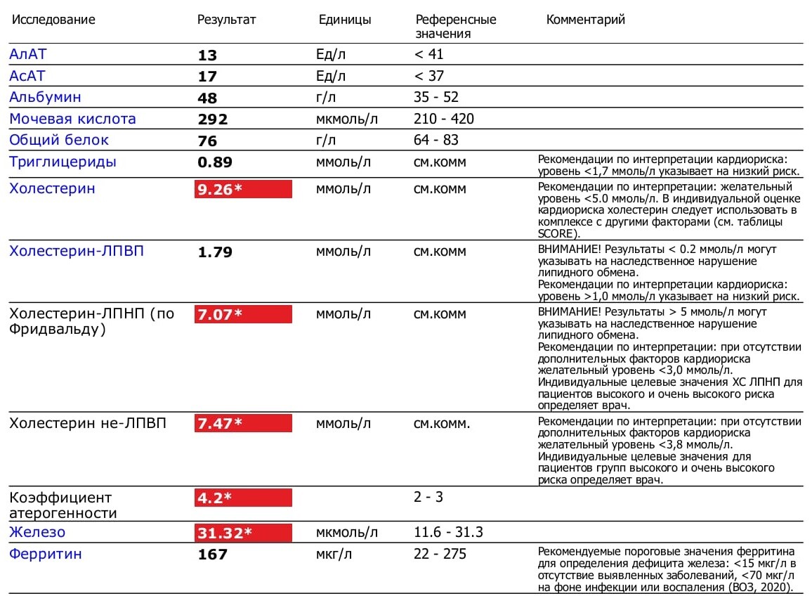 Целевые значения зависят от индивидуального риска; иногда нужны повторные анализы и очная консультация — мы это явно отмечаем в отчёте.